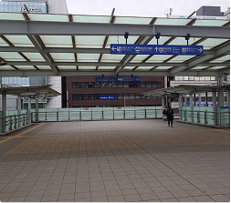 写真の地点までお進みいただきましたら、階段またはエレベーターで地上へお降りください。