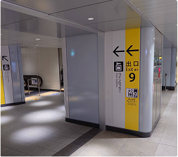 こちらの9番出口からエスカレーター等で地上までお上がりください