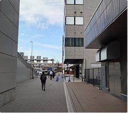 地上に出ましたら写真の方向へ直進し、信号を1つだけ渡ってください